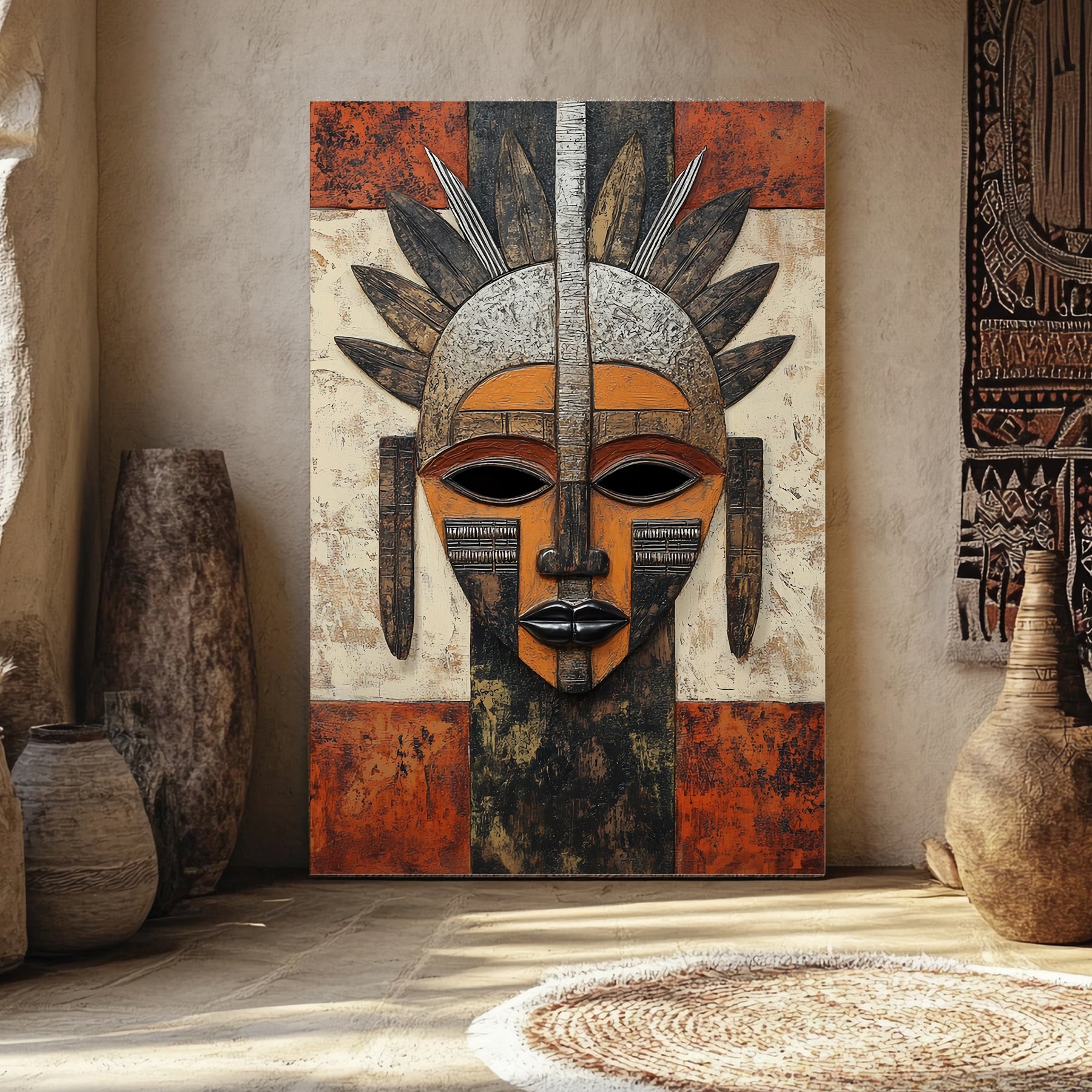 African Inspired Abstract Wall Art Stretched Canvas - "Guardian of Tradition"