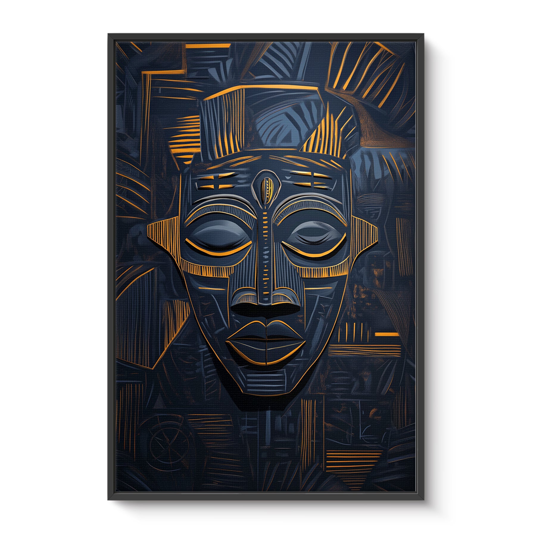 African Abstract Art Framed Canvas Print - "Guardian of Tradition"