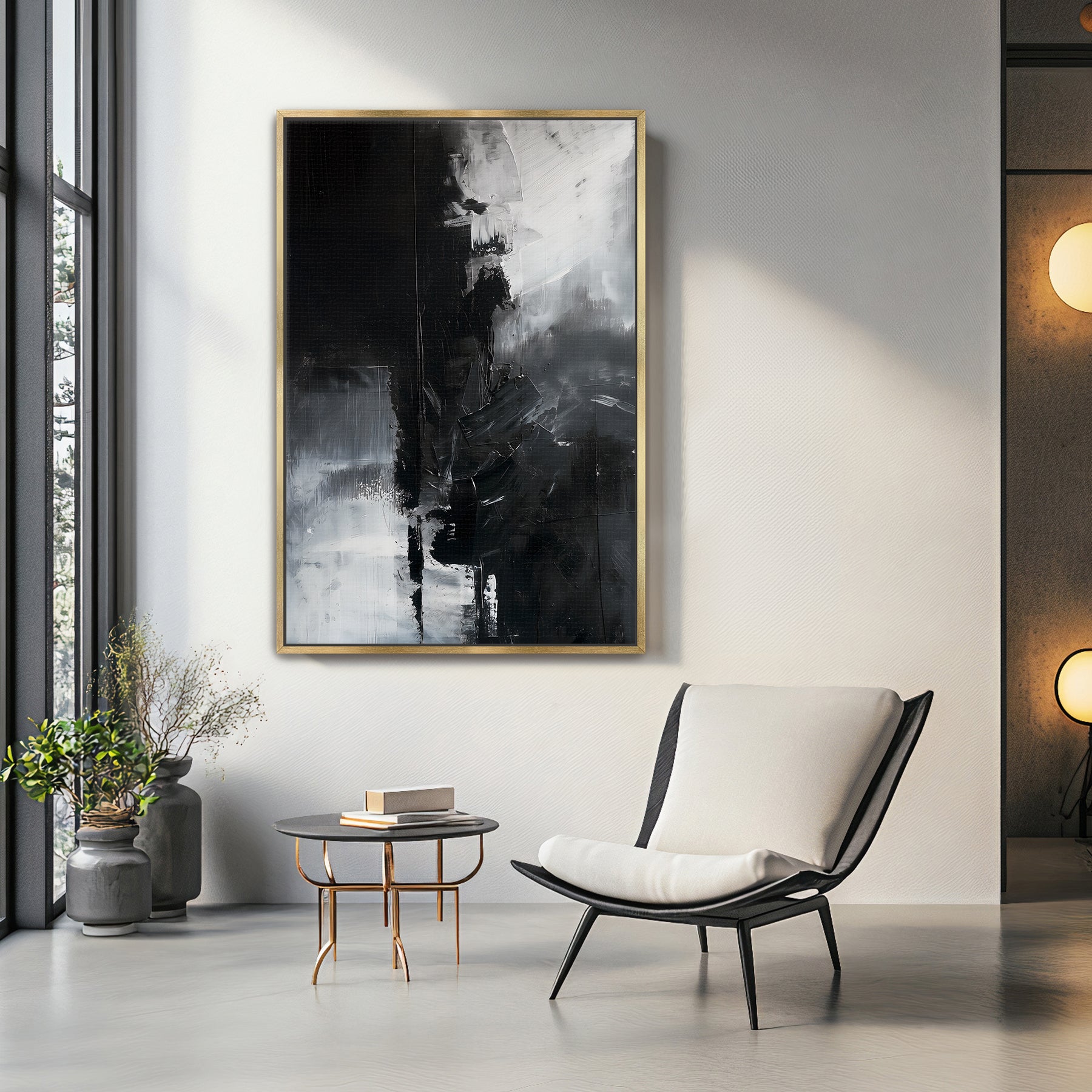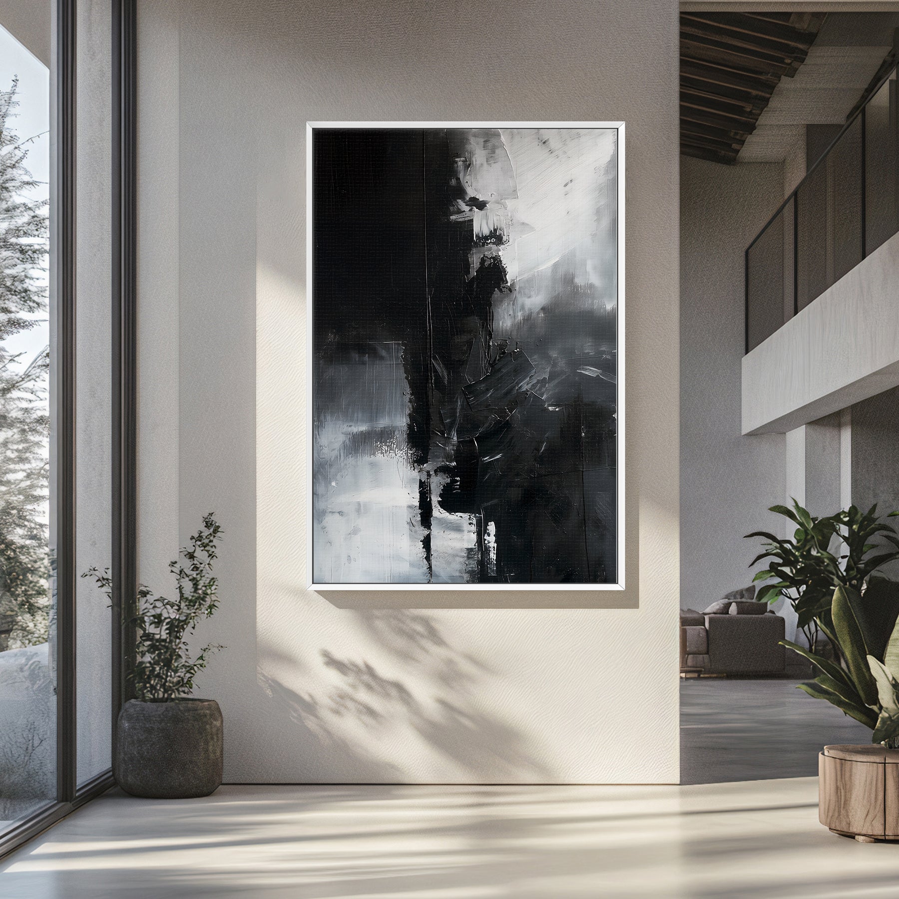 Abstract Monochromatic Framed Canvas Wall Art - "Midnight Fragment"
