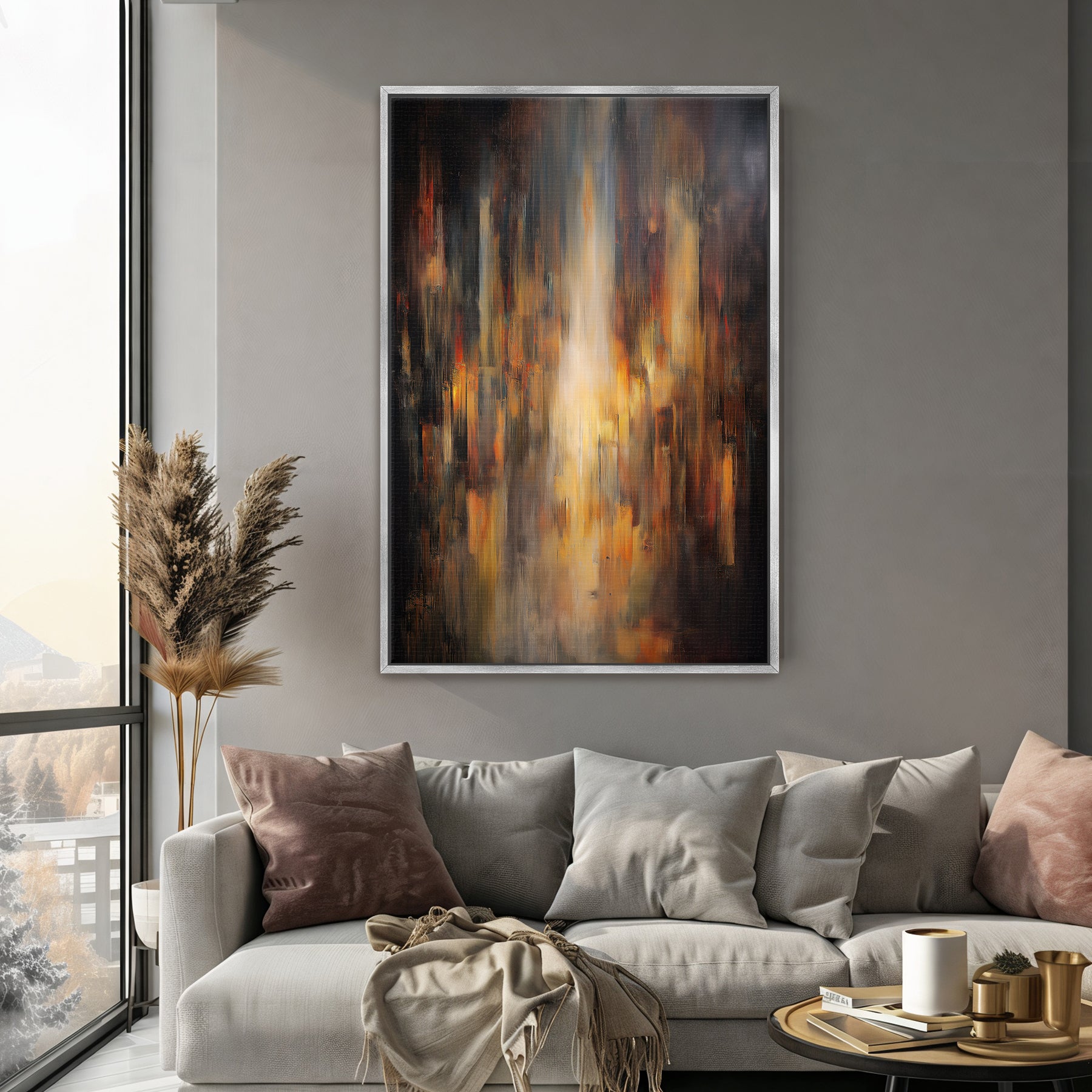 Luminous Abstract Framed Canvas Wall Art - "Emberfall"