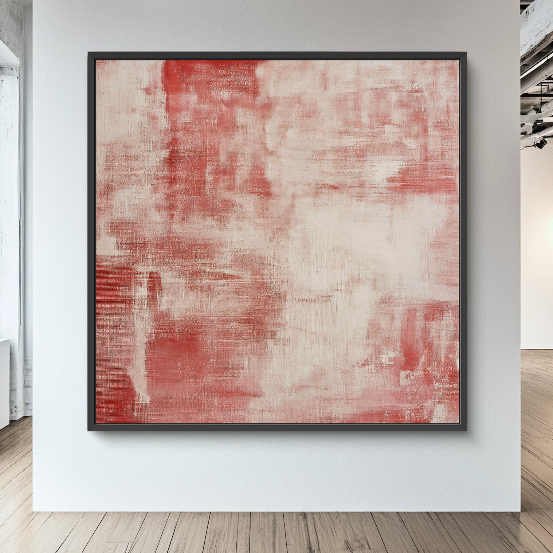This ready-to-hang giclee print is professionally framed, beautifully showcasing the artwork's distressed texture and striking color contrast. The bold rouge red layer is worn away in areas, highlighting the soft, creamy underlayer. The frame provides a refined, finished look, making this piece ideal for creating a powerful and sophisticated focal point. It arrives ready to be a centerpiece on your wall.