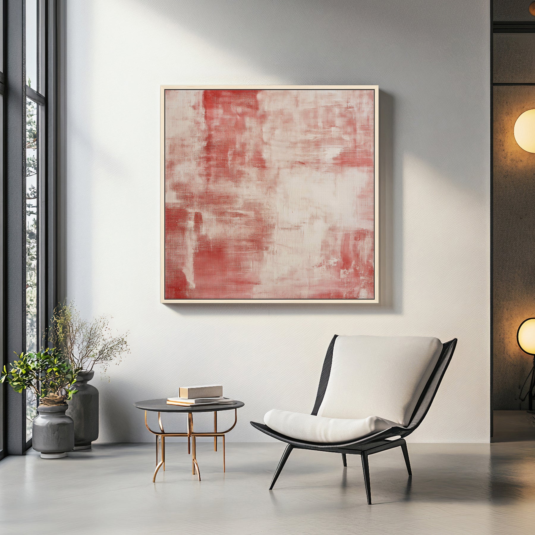 Minimalist Abstract Artwork Framed Canvas Wall Art - "Rouge Stain"